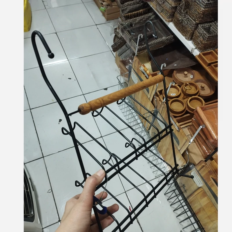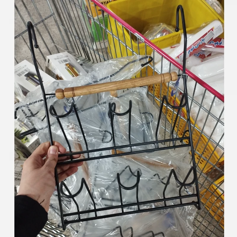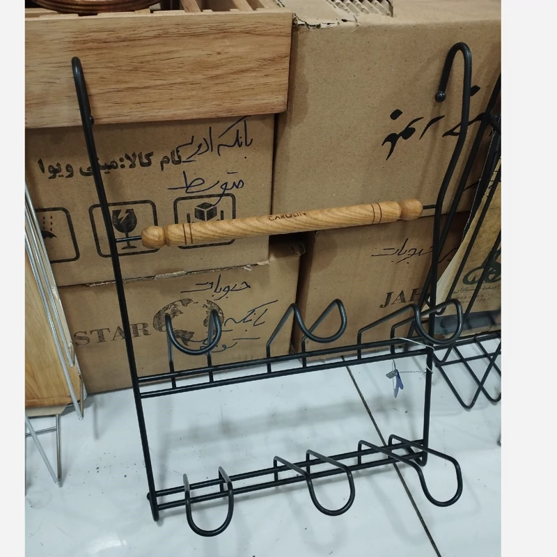 آویز لیوان فلزی مشکی 6عددی دارای دسته ی چوبی ضدآب ضدزنگ و رنگ ثابت کیفیت فوقالعاده عالی داره وبسیار محکمه