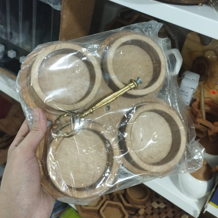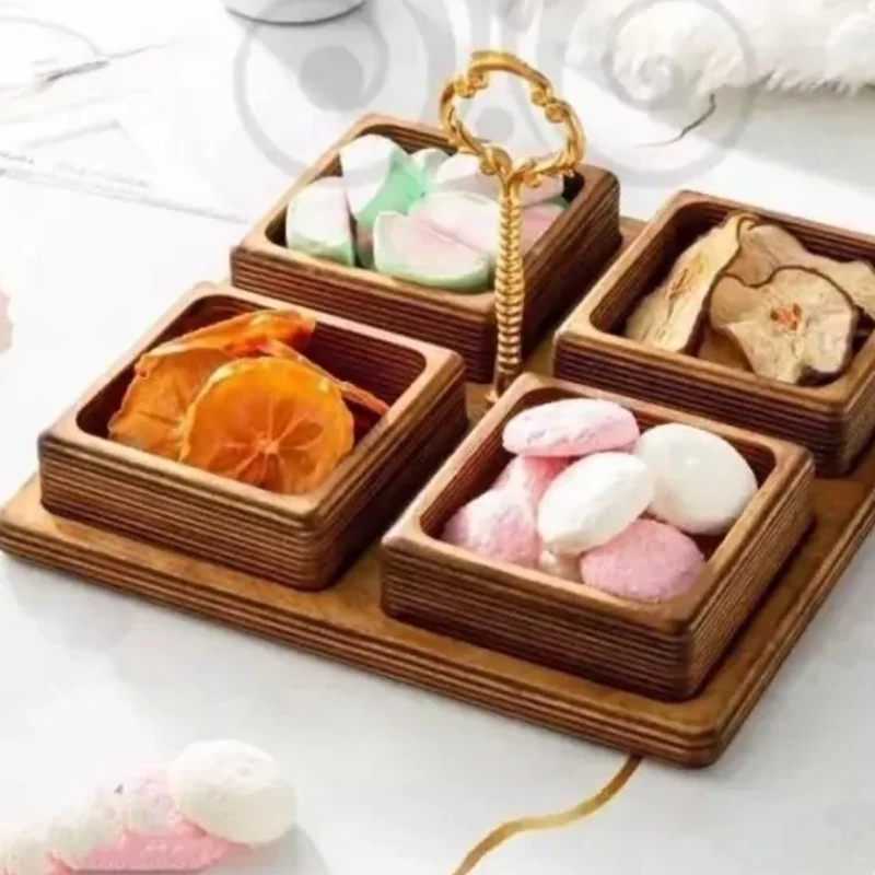 اردوخوری چهار خانه چوبی دسته طلایی ✨